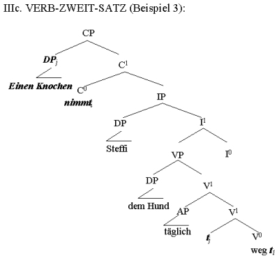 4. Beispiel: Ableitung eines Verbzweit-Satzes, ausgehend von Verbletzt, über Verberst
